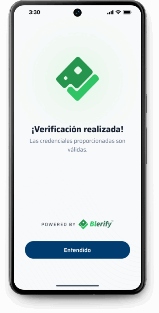 Una vez que el usuario acepta, el verificador verá inmediatamente el resultado en pantalla, el cual incluirá: